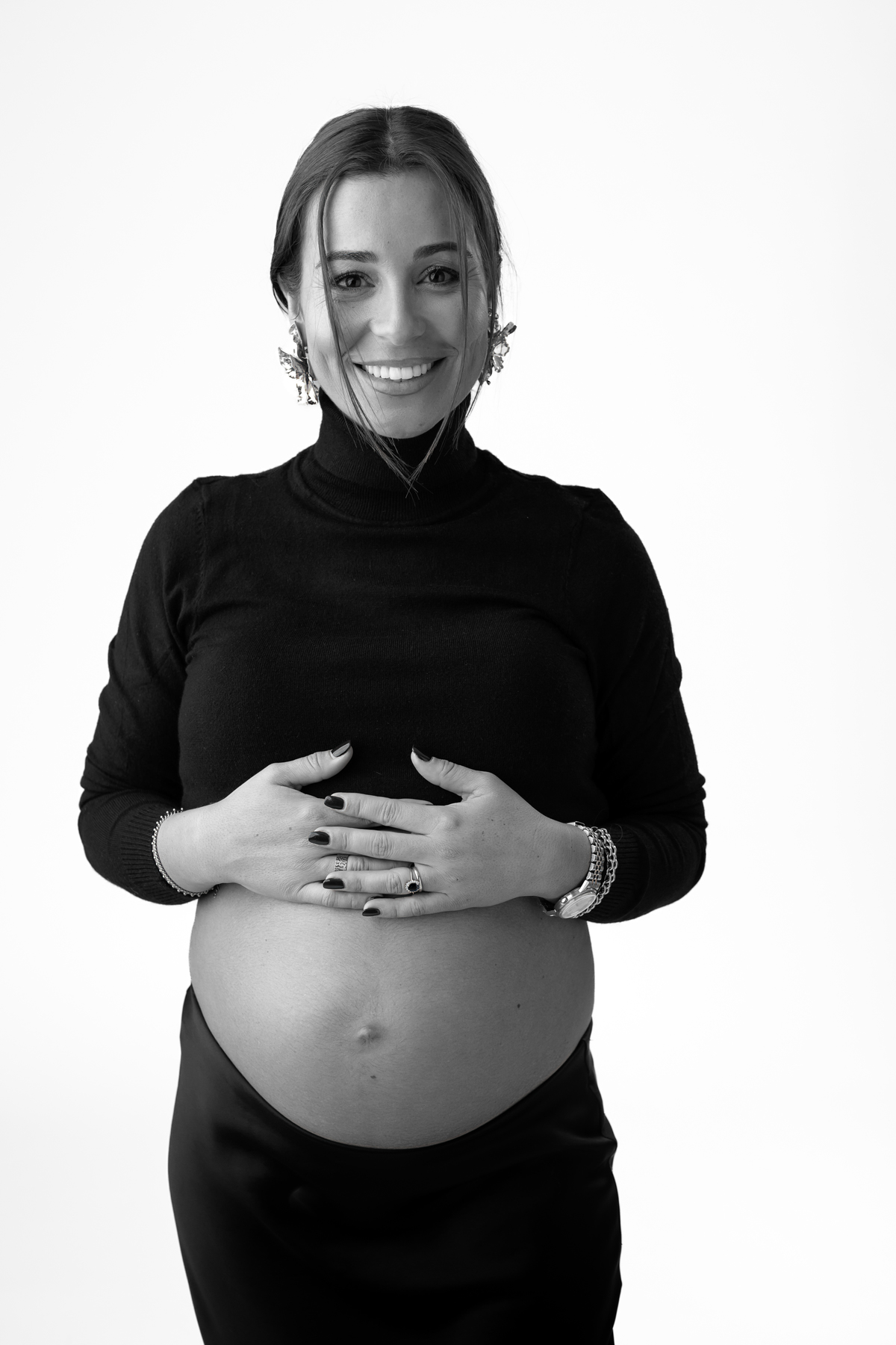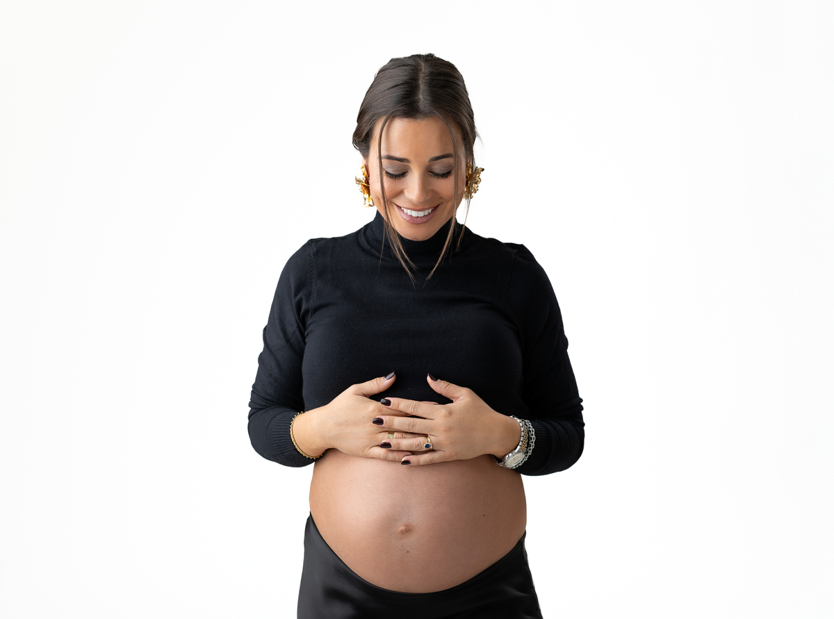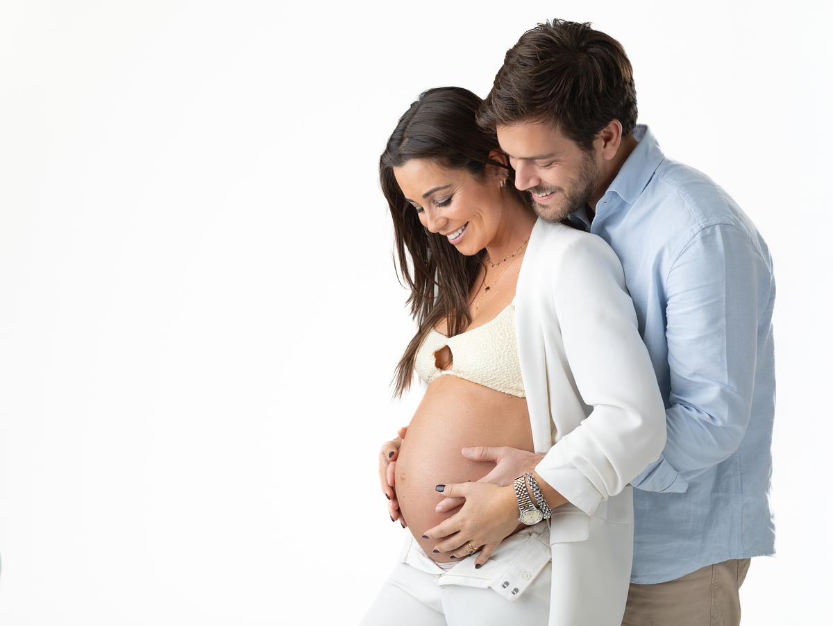 A sessão de Maternidade em estúdio da B. decorreu num ambiente minimalista e com uma luz a dar realce ao contraste o que nos permitiu captar cada momento ao pormenor. Nas sessões de Maternidade em estúdio, o ambiente é controlado com a temperatura e condições que permitem ao cliente ter o máximo nível de comodidade possível.